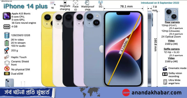 The iPhone 14 Plus has a sleek design. It is made with high-quality materials. It feels premium in hand. The phone is available in multiple colors. Some colors include black, white, and blue. It has a glass front and back. The frame is made of aluminum.